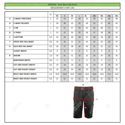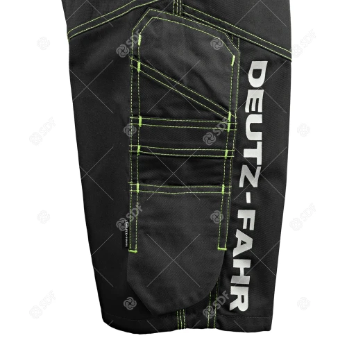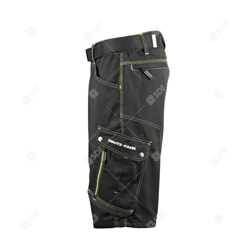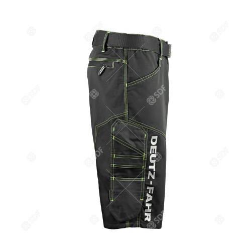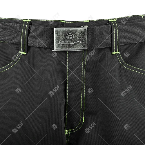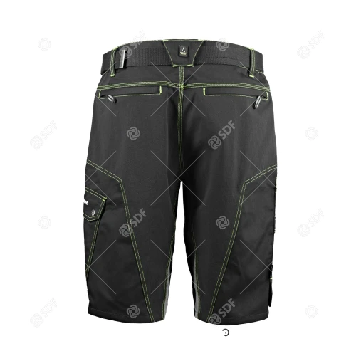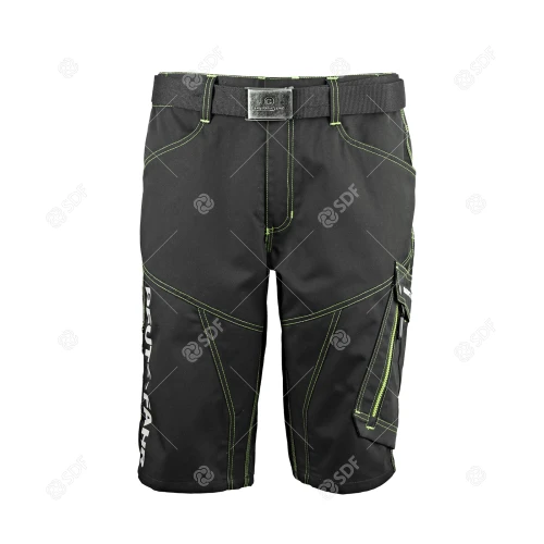 Arbeidsshorts i slitesterkt og varig twillstoff på 280 g/m². Elastiske innlegg bak i 90 % nylon, 10 % spandex, 250 g/m². Reflekterende kantbånd, mange multifunksjonslommer, nylonbelte med metallspenne, kontrastsømmer og en rekke grønne detaljer. CE-merket.