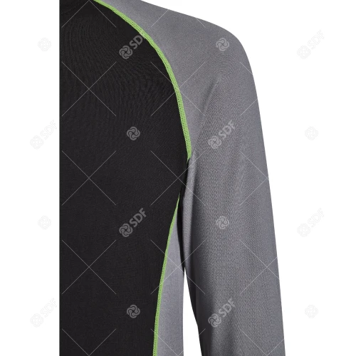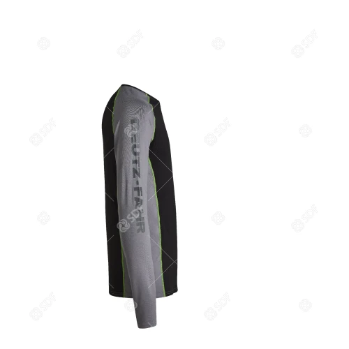 Det perfekte valget for alle som ønsker overlegen komfort og ytelse. DEUTZ-FAHR Carbon Dry langermet t-skjorte er laget av materialer av høy kvalitet og har fukttransporterende egenskaper som holder brukeren kjølig og tørr. Ideell for sport, eller for bruk om vinteren under arbeidsklær for å holde deg varmere. DEUTZ-FAHR-skriften i samme fargetoner trykt langs høyre erme og kontrasterende grønne sømmer fullfører dette svært allsidige plagget.
