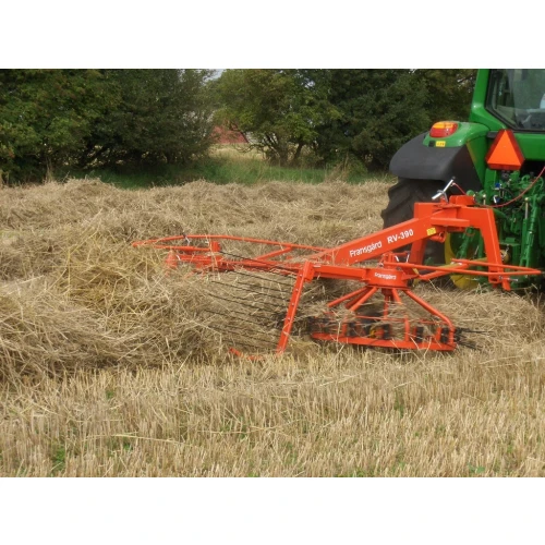 Fransgård Combirive RV-390 er en enkel og robust kombirive. Maskinen kan stilles inn til for skjellig arbeid, både spredning og sammenraking. Riven kan også brukes til lufting av ranker med godt resultat. Samlegrind og PTO er inkludert.