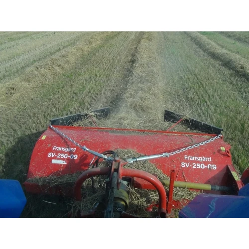 Fransgård Skårlufter SV-250 er en kraftig og stabil rotorrive. Skårlufteren er bygget med en liggende rotor som har 72 tinder(pick-up tenner). Den samler opp materialet uten at stein og jord kommer med. Skårlufteren lager en jevn og luftig skår som tørker lett. Riven leveres med skårskjermer.