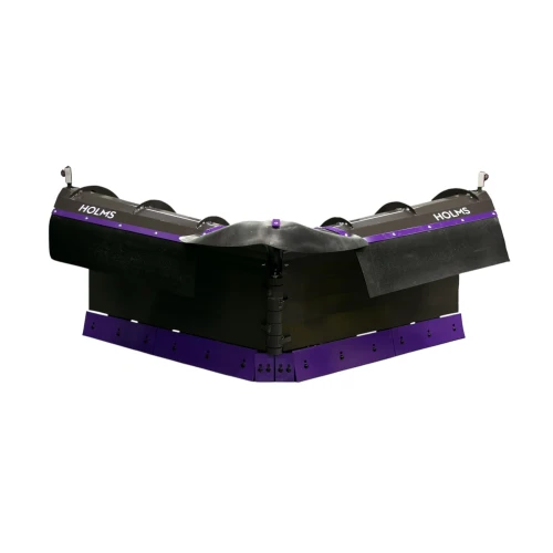 Holms sammenleggbare plog PV – Butterfly er en sommerfuglplog med kraftig snøkast for lastere og traktorer. Lysenhet med reflektor. Snøbeskyttelse. Bøyd slitestål med positiv skjærevinkel. Isskrape eller gummiskjærekant tilgjengelig som tilleggsutstyr.