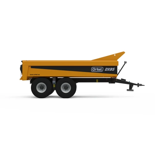 er utviklet og konstruert for de tyngre transportoppgavene, og er en av de minste Orkels dumpertilhengere. Hengeren har kraftig V-ramme med solide boggikasser med forsterkede nav og utvendige bremsesylindre. Hengeren leveres med hydraulisk bakluke som standard. DX85 har 4 mm hardox bunnplate og en karmhøyde på 55 cm. Tillatt totalvekt er 10 500 kg.