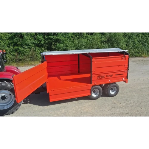 Orkel TT130 har innvendig planbredde på hele 2,41 m. Dette gjør hengeren spesielt godt egnet til transport av paller, kasser og rundballer. Ved påmontering av høgkarm med rullbar presenning vil hengerens store volum gjøre den godt tilpasset transport av korn, flis og andre materialer i bulk. TT130 har 4 mm bunnplate, kraftige karmstaker og en karmhøyde på 60 cm. Tillatt totalvekt er 15 500 kg.
