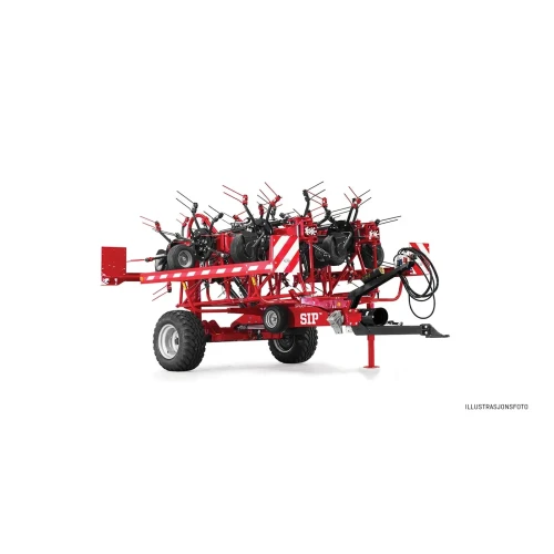 SIP SPIDER 900/8-T er en slept 8-rotors sprederive som er ekstremt robust og kompakt, samtidig som den forblir lett. Til tross for den store arbeidsbredden gir de sammenkoblede beskyttelsesskinnene utmerket stabilitet. Hver rotor tilpasser seg terrenget individuelt, og den mindre diameteren med patentert rotorvinkeljustering sikrer jevn spredning uavhengig av fôrmengde.