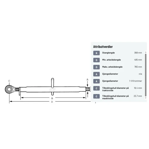 | C. Tilkoblingshull diameter på traktorside | 19,4 mm | |