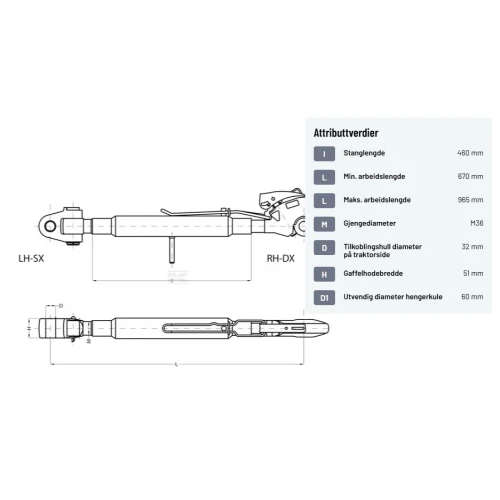 | D. Tilkoblingshull diameter på traktorside | 32 mm | |