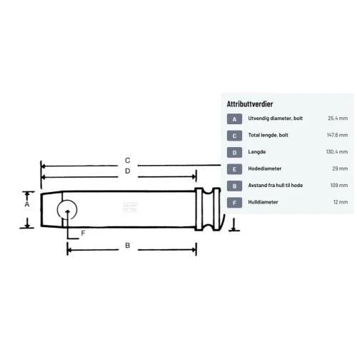 | A. Utvendig diameter, bolt | 25,4 mm | |