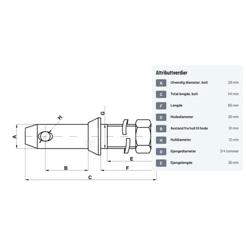 | A. Utvendig diameter, bolt | 28 mm | |